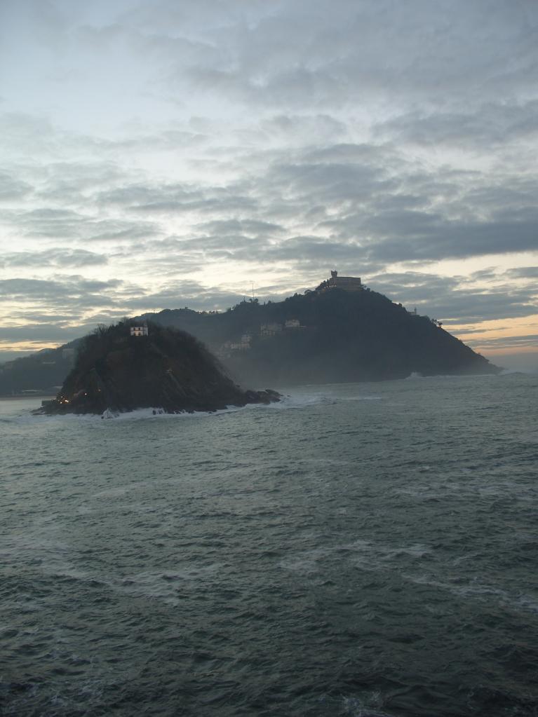 Sun setting on isles off San Sebastian/Donostia