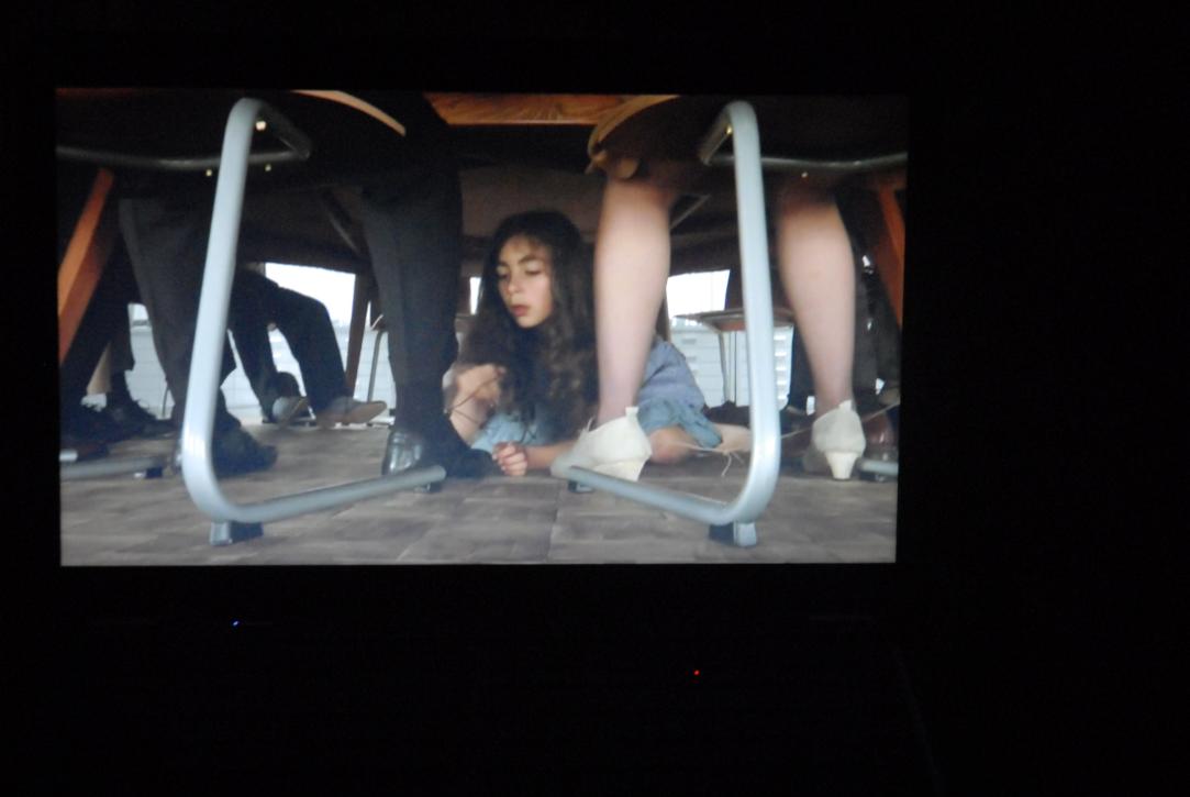 Table, chairs, installation with 12 channel video