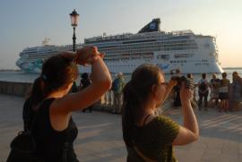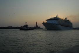 (88. /ex lightbox) Venice view from the giardini shore with freight ship