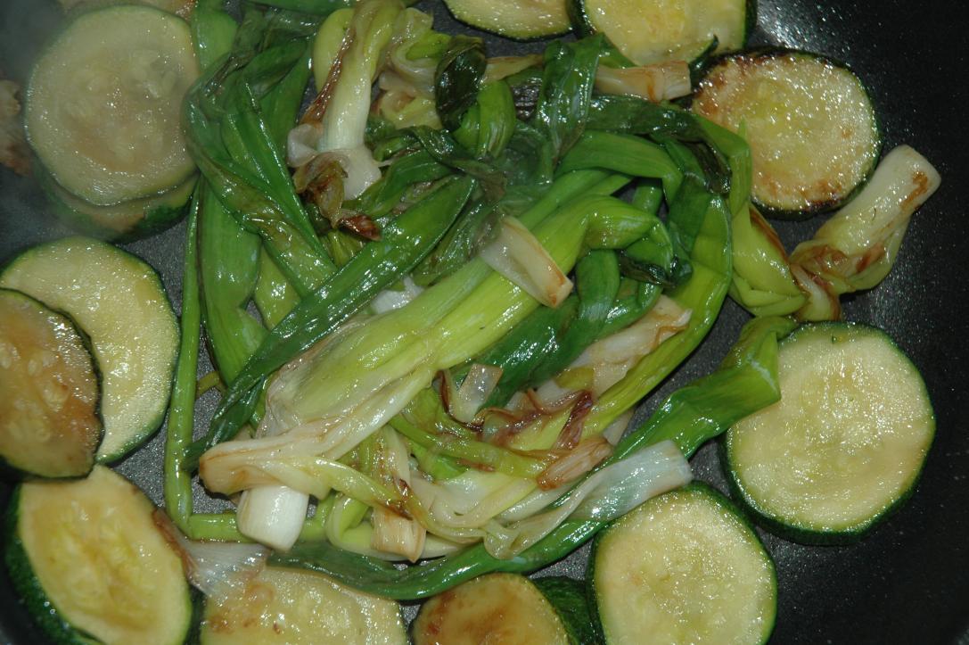 gebratene zucchiniwuerfel/diced fried zucchini