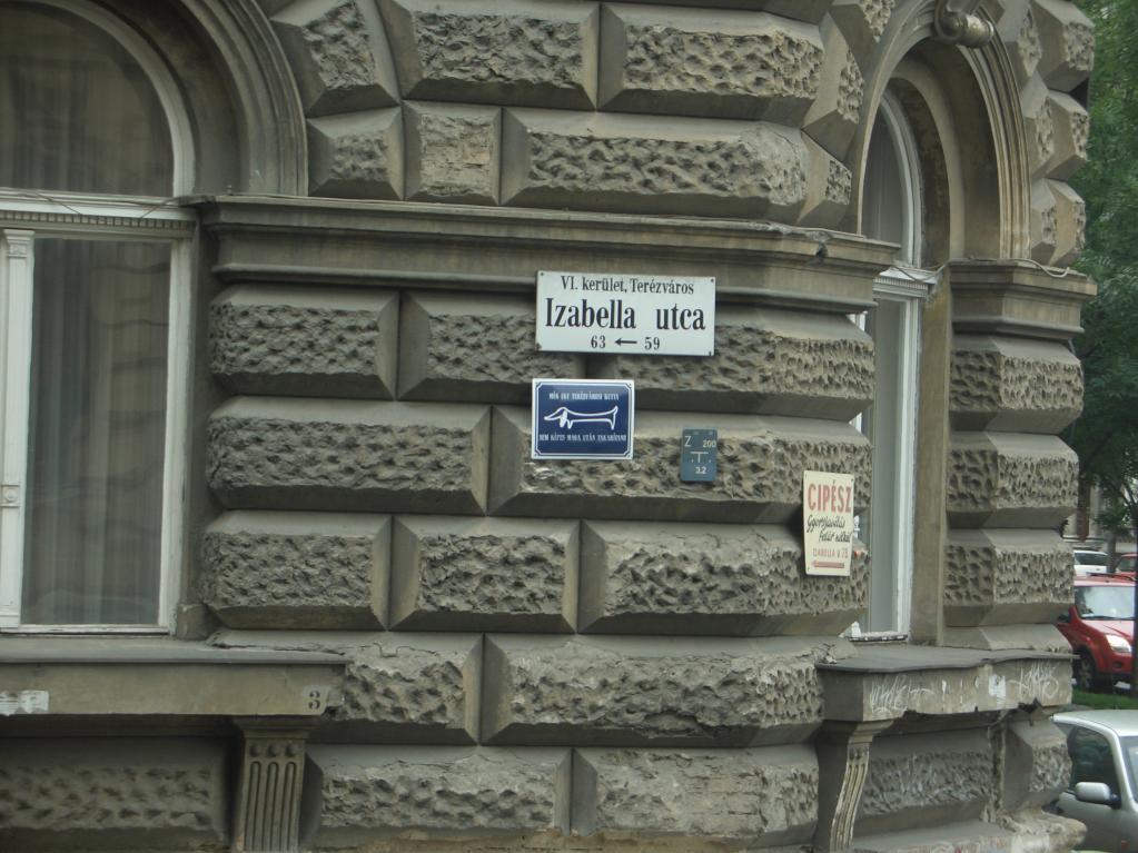 Street sign near Andrassy/Octagon with dog sign