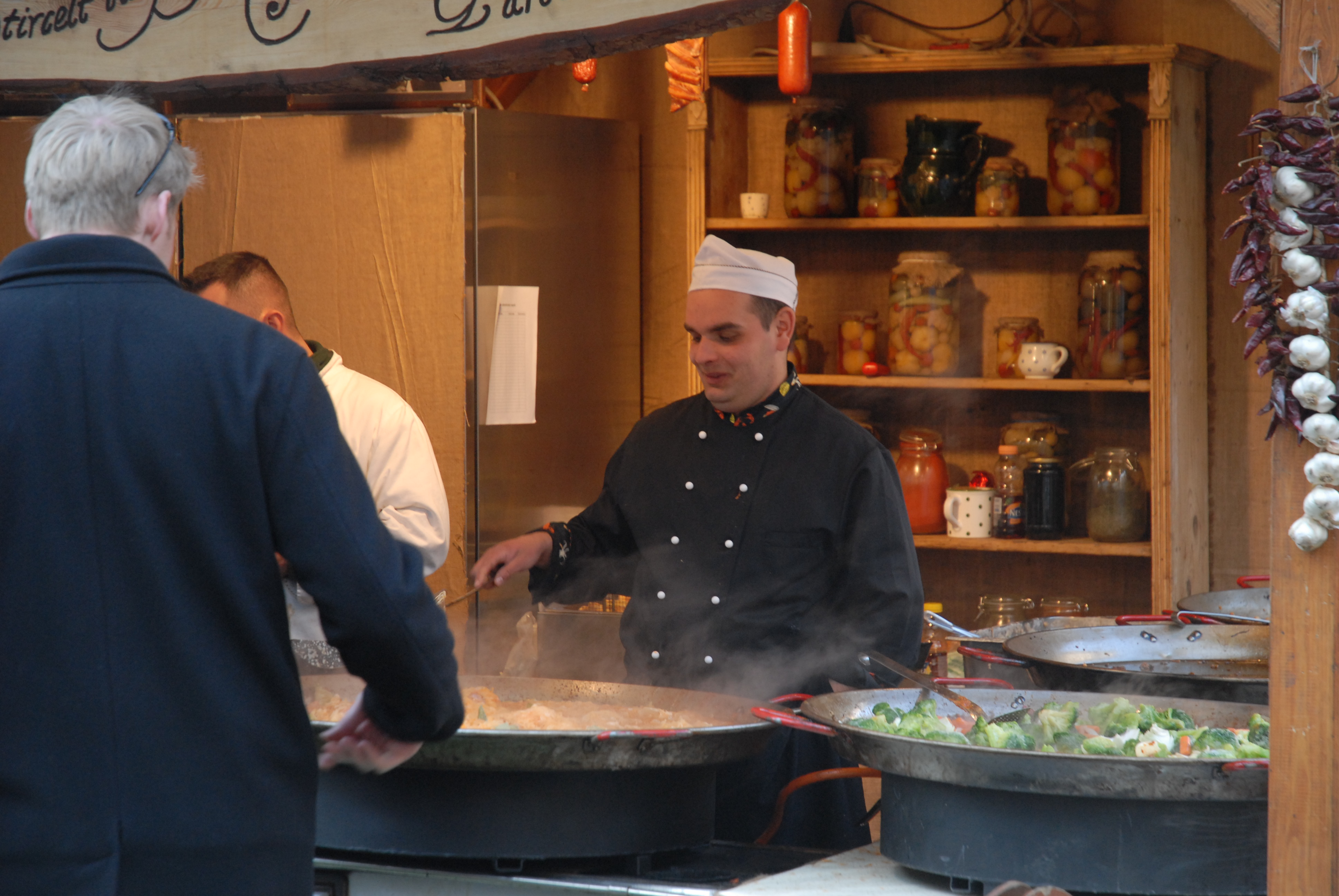 Philipp buying a potato pancake with cream