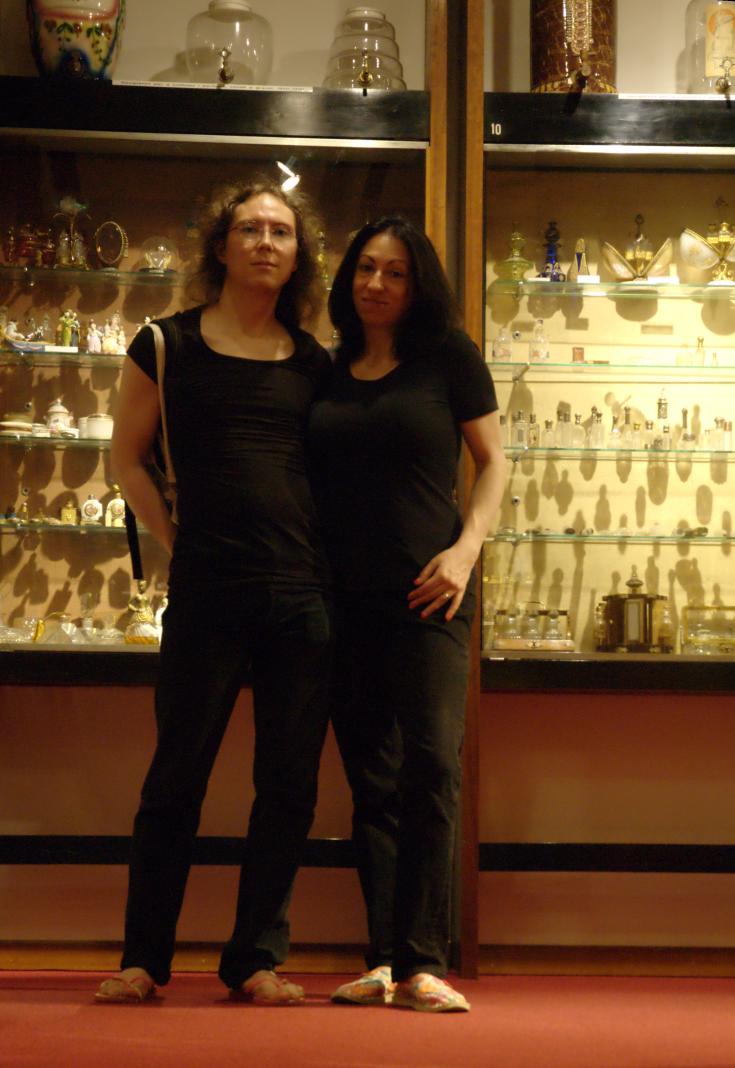 (30. /ex lightbox) Esthrich and Alexandr beside the Guerlain display at