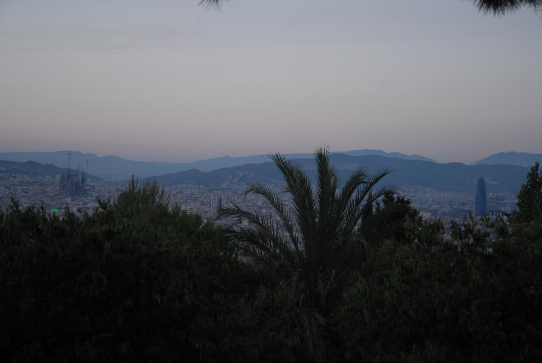 (105. /ex lightbox) View over Barcelona from Montjuïc: Torre Agbar y Sagrada Familia