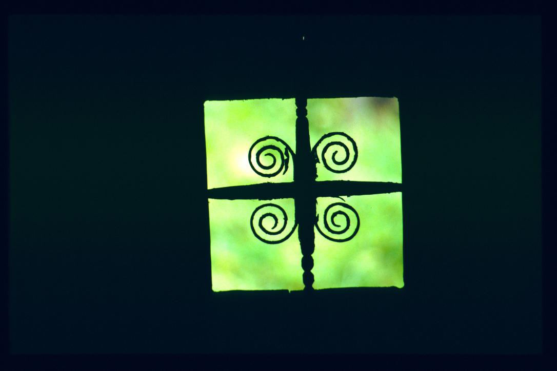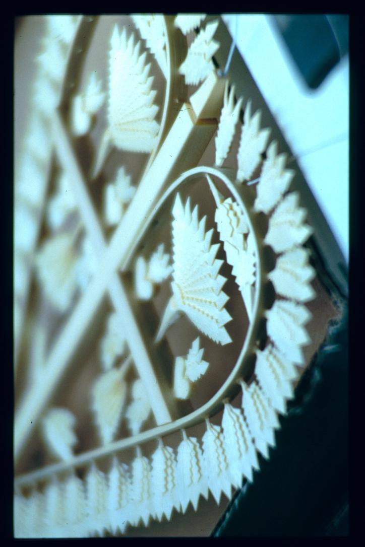 strangely carved ceiling in block house